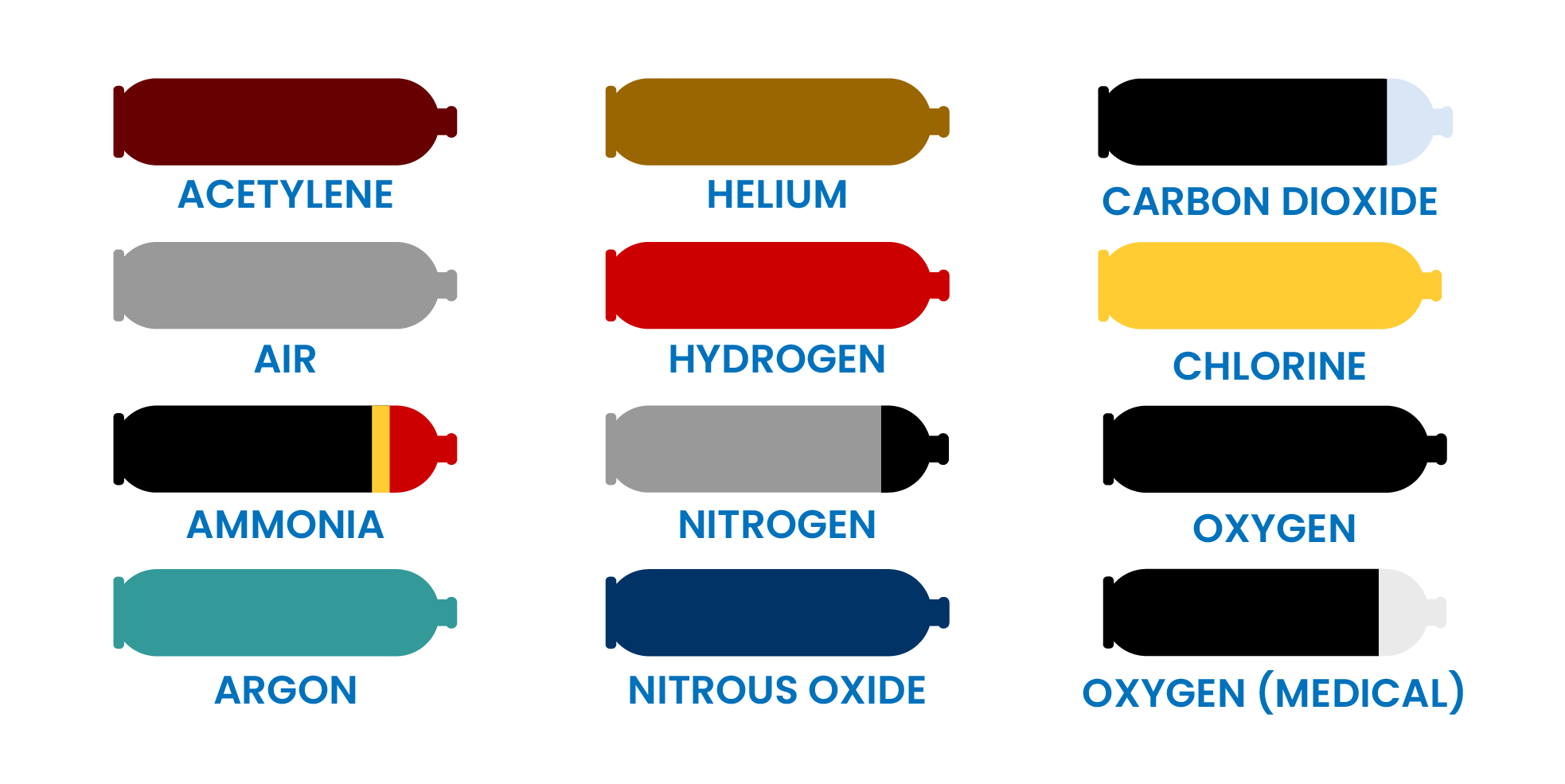 The color of the cylinder is only an indication; always read the label to identify the contents of a cylinder.